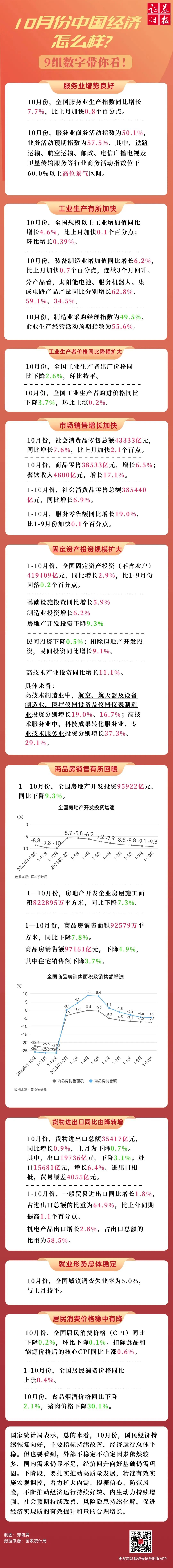 11月15日上午,国务院新闻办公室举行新闻发布会,国家统计局新闻发言人、总经济师、国民经济综合统计司司长刘爱华介绍2023年10月份国民经济运行情况,并答记者问。